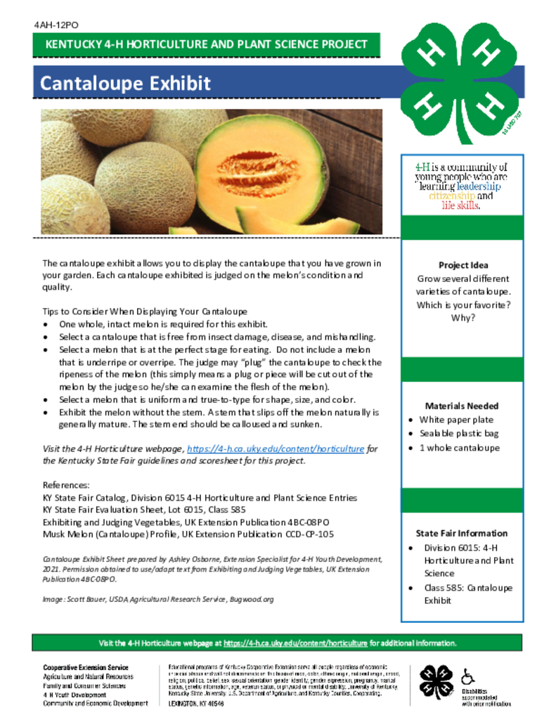 The cantaloupe exhibit allows you to display the cantaloupe that you have grown in your garden. Each cantaloupe exhibited is judged on the melon's condition and quality.