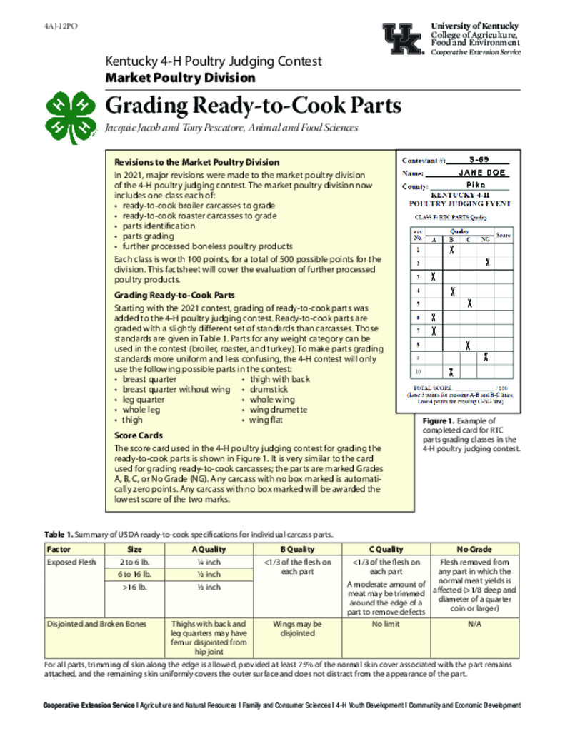 Kentucky 4-H Poultry Judging Contest: Market Poultry: Grading to Ready to Cook Parts