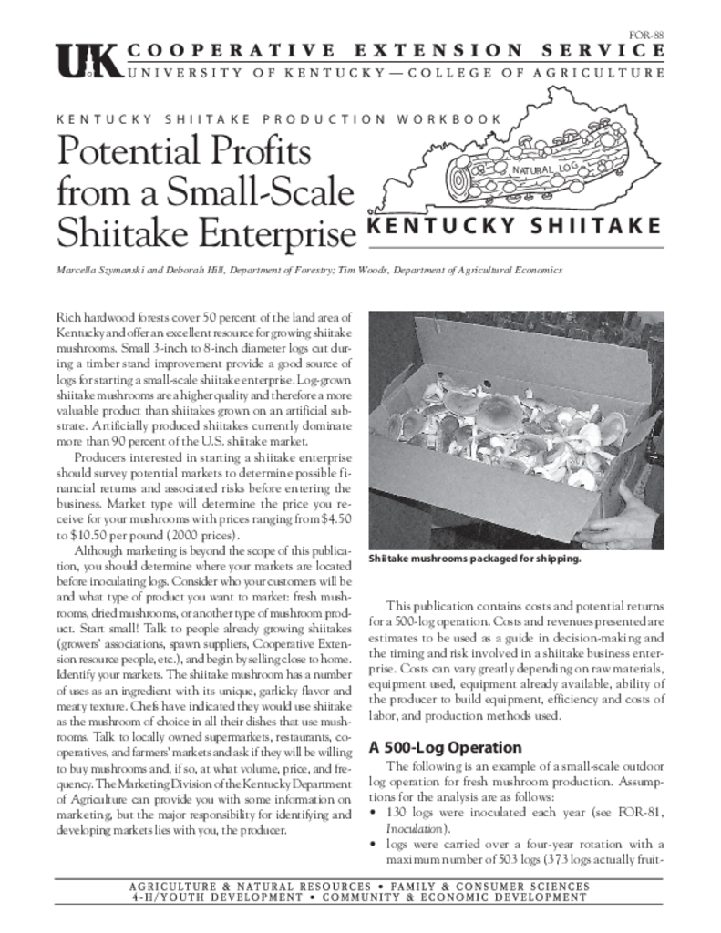 Shiitake Production: Potential Profits from a Small-Scale Shiitake Enterprise