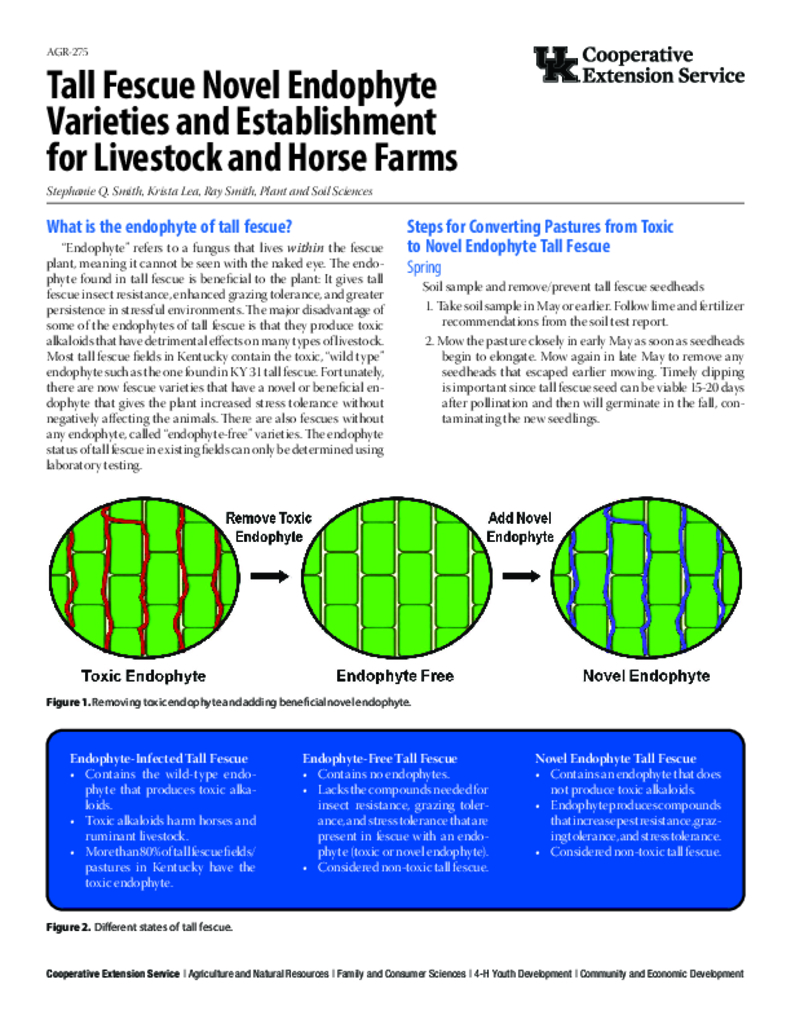 Tall Fescue Novel Endophyte Varieties and Establishment for Livestock and Horse Farms