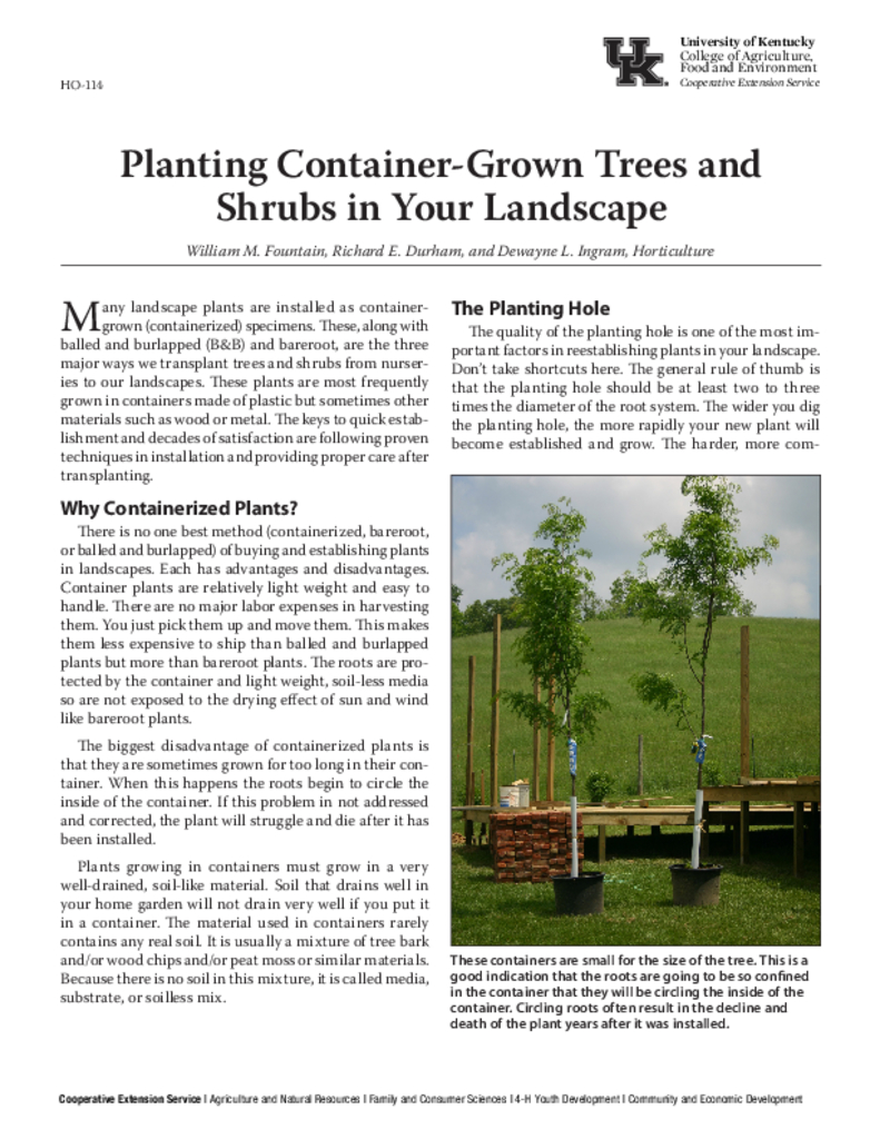Planting Container-Grown Trees and Shrubs in Your Landscape