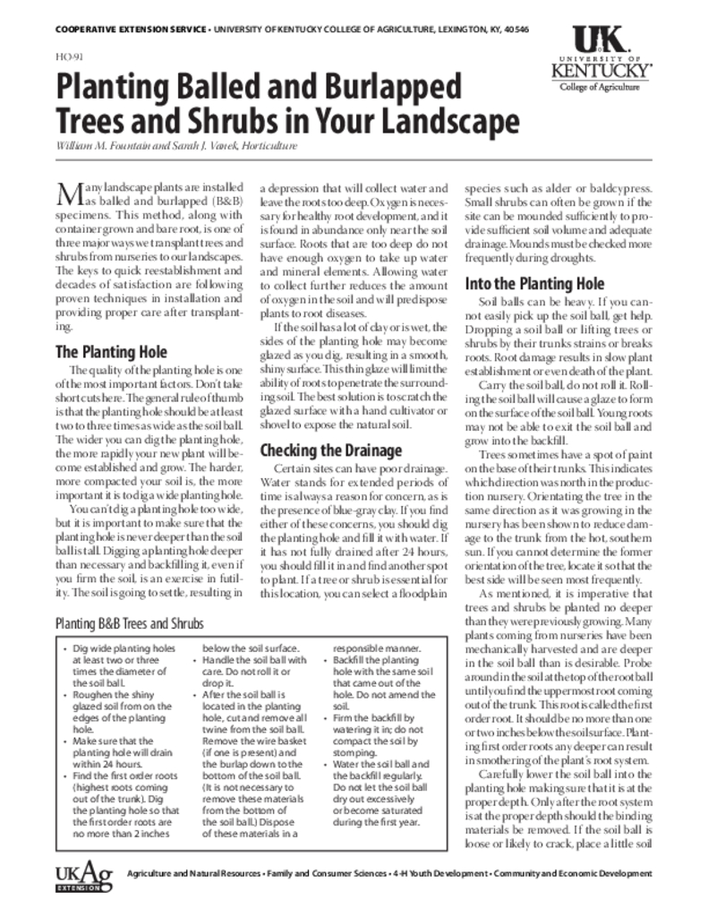 Planting Balled and Burlapped Trees and Shrubs in Your Landscape