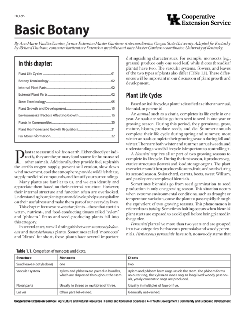 Basic Botany: Kentucky Master Gardener Manual Chapter 1