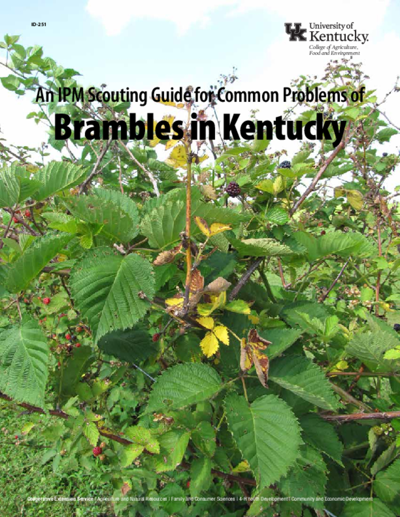 Long before the term "sustainable" became a household word, farmers were implementing sustainable practices in the form of Integrated Pest Management (IPM) strategies. IPM uses a combination of biological, cultural, physical, and chemical methods to reduce and/or manage pathogen and pest populations. These strategies are used to minimize environmental risks, economic costs, and health hazards. Pathogens and pests are managed (although rarely eliminated entirely) to reduce their negative impact on the crop. Scouting and monitoring for diseases, insects, weeds, and abiotic disorders helps identify potential problems before serious losses result. This is essential to the IPM approach. The key to effective monitoring is accurate identification. The images included in this guide represent the more common abiotic and biotic problems that occur in Kentucky blackberry and raspberry plantings.