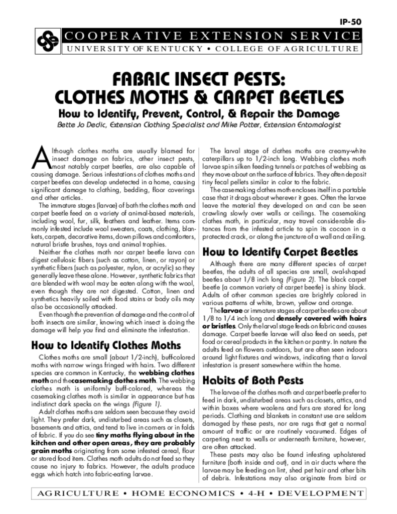 Fabric Insect Pests: Clothes Moths and Carpet Beetles