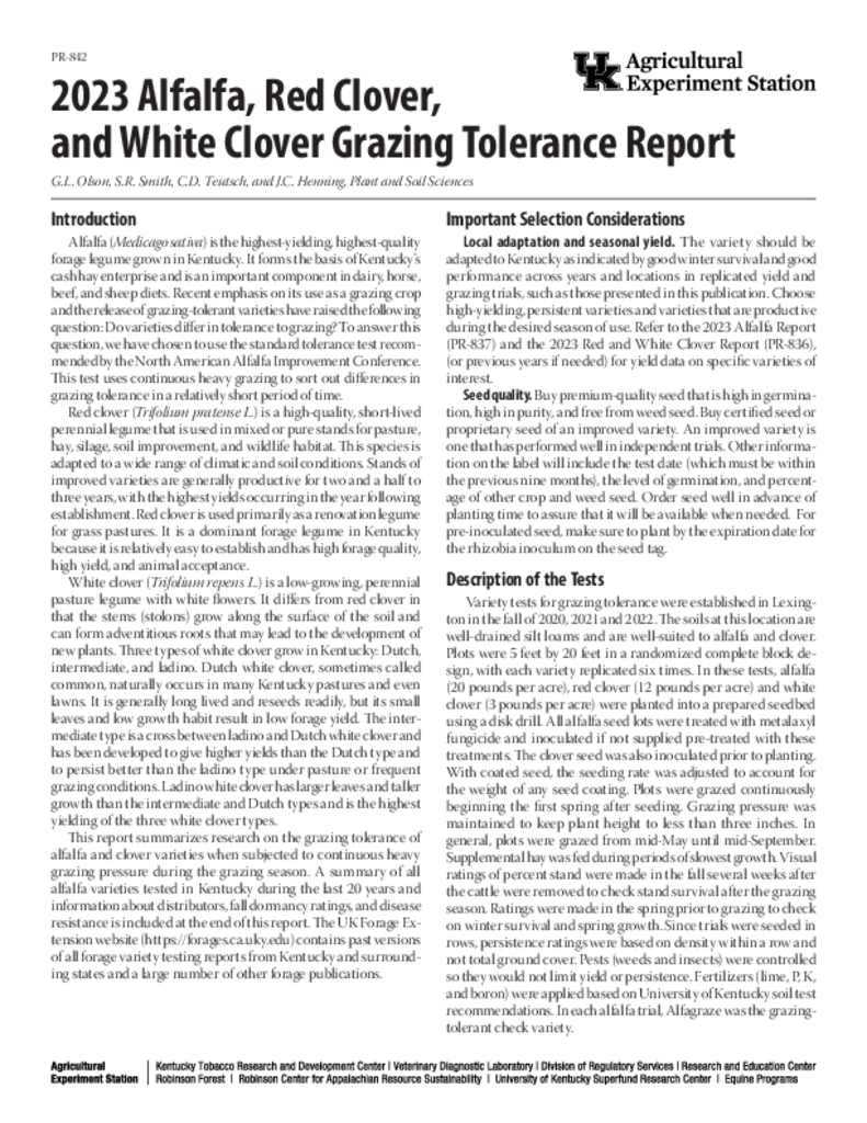 2023 Alfalfa, Red Clover, and White Clover Grazing Tolerance Report