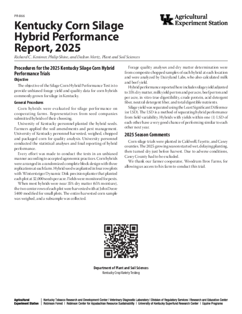 Kentucky Corn Silage Hybrid Performance Report, 2025